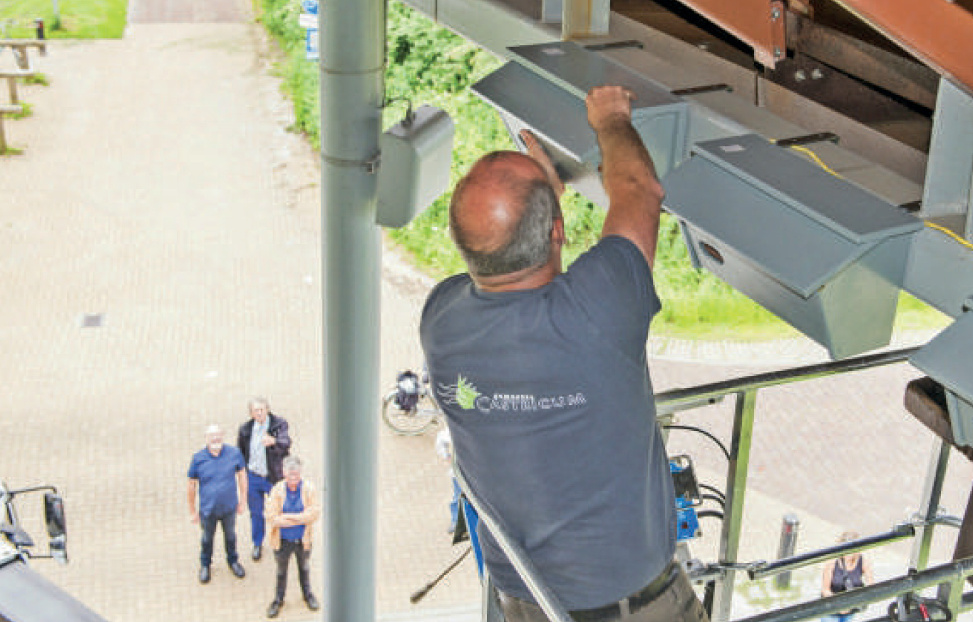 opgehangen op 11,5 meter hoogte. De kastjes zijn voorzien